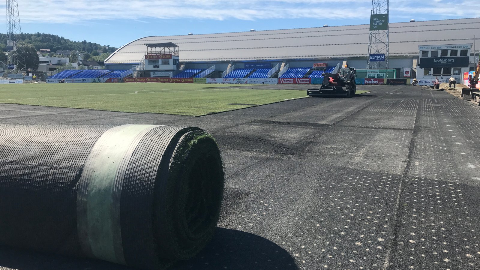 I går startet kunstgressbyttet. 4.august spilles Ranheim - RBK på nytt kunstgress.