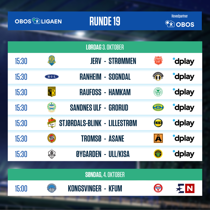 Da er resten av sesongen i OBOS-ligaen berammet og nedenfor kan du se når laget ditt spiller.