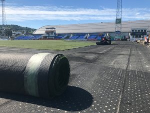 I går startet kunstgressbyttet. 4.august spilles Ranheim - RBK på nytt kunstgress.